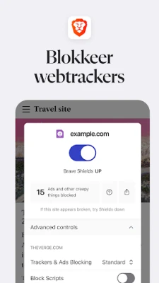 Met Brave Web Browser krijgt u een ingebouwde AdBlocker die uw privacy beschermt en tegelijkertijd data bespaart. Deze intelligente functie blokkeert niet alleen advertenties van derden en ongewenste pop-ups, maar voorkomt ook dat uw online activiteiten ongemerkt worden gevolgd. Bovendien is de Brave Web Browser uitgerust met geavanceerde privacytools zoals HTTPS Everywhere voor versleuteld dataverkeer, scriptblokkering en de mogelijkheid om cookies van derden te weren. Gebruik privé-tabbladen voor extra anonimiteit, alles zonder dat u externe plug-ins of complexe instellingen hoeft te configureren.