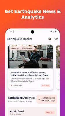 Blijf op de hoogte van seismische activiteit wereldwijd met Earthquake Tracker. Ontvang realtime meldingen, bekijk een interactieve kaart en analyseer duidelijke statistieken. De app gebruikt officiële gegevens van USGS, EMSC en GFZ voor betrouwbare en accurate informatie.