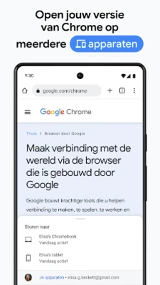 Ontdek Chrome, de snelle en veilige browser van Google. Ervaar het internet in zijn volle potentieel, met slimme functies die elke online activiteit soepel en beschermd maken. Chrome helpt je bij elke stap om het beste uit het web te halen.