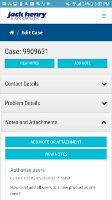 De Jack Henry support app biedt gemakkelijke toegang tot ondersteuning voor al uw Jack Henry producten. Beheer uw self-service support en client work request cases efficiënt, door ze aan te maken, te bekijken en te organiseren, allemaal binnen handbereik.